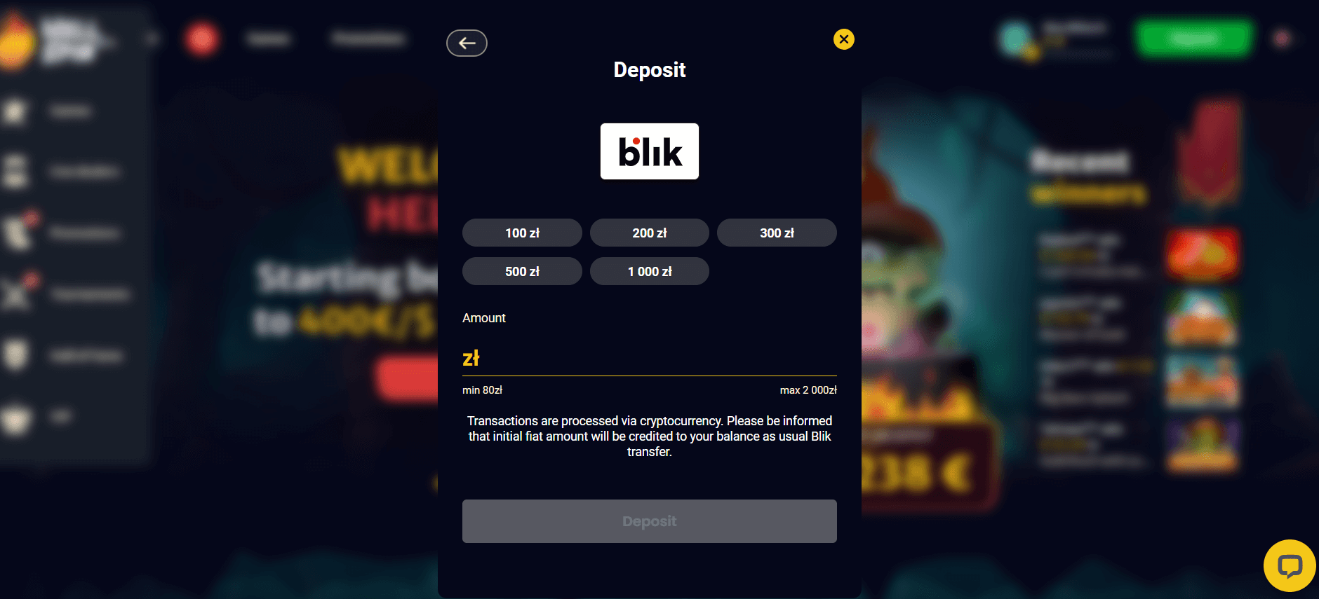 - 🌍 Ograniczona dostępność: BLIK jest dostępny tylko w Polsce i może być używany tylko z polskimi złotymi (PLN). Ogranicza to jego użycie dla graczy, którzy mogą chcieć grać w innych walutach lub z innych krajów.
